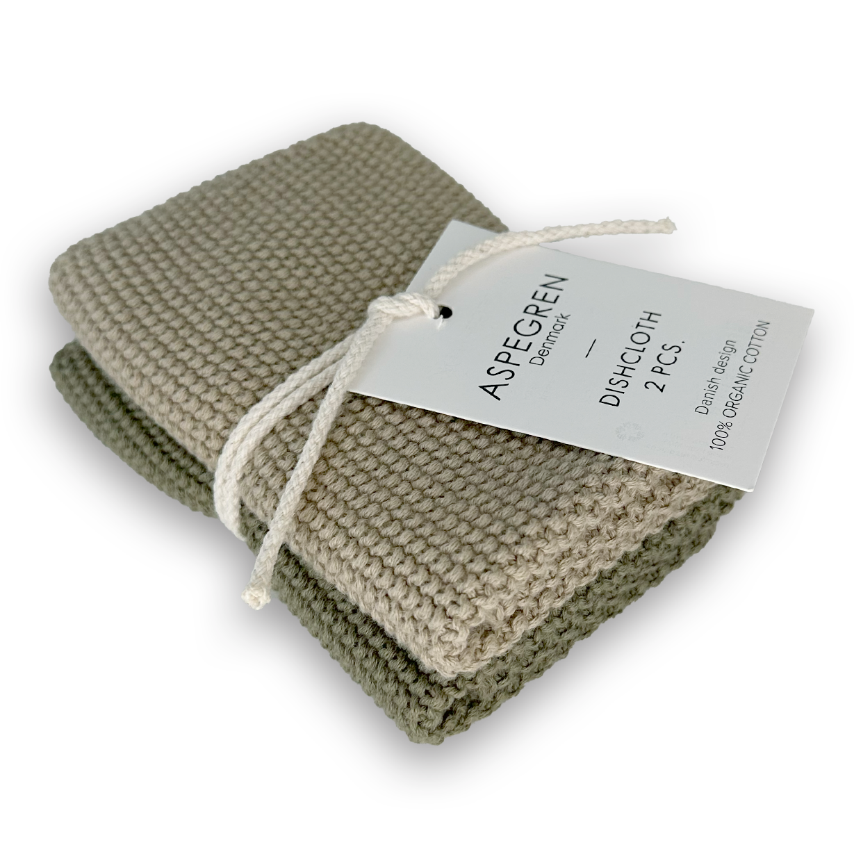 Dishcloths - Organic Cotton - Set of 2 - Knitted - Olive