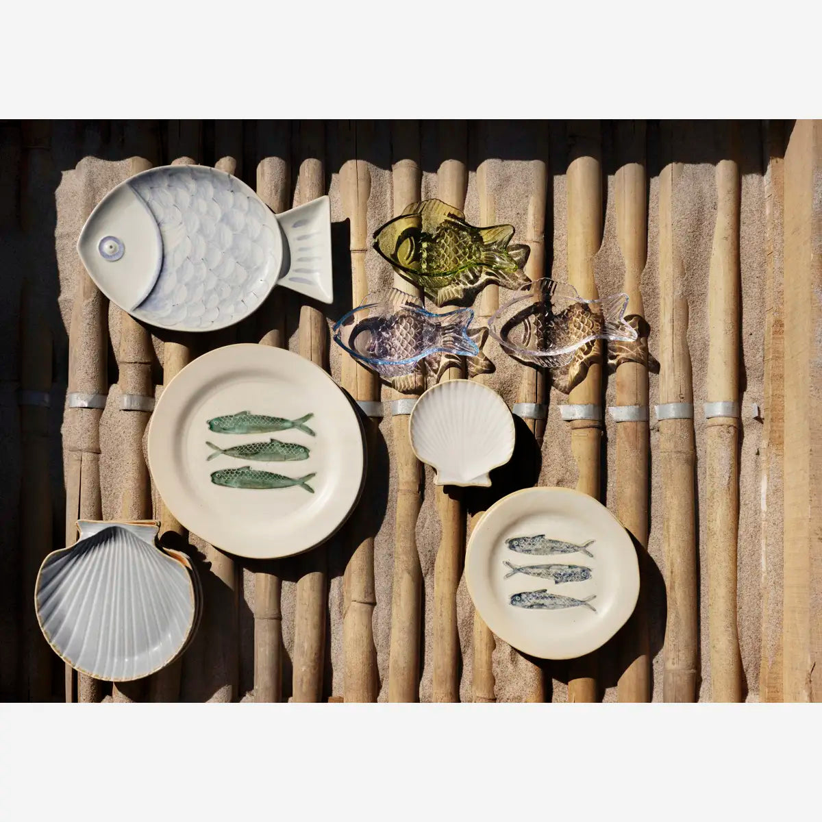Crafted from robust stoneware, this stoneware lunch plate in off white + blue features a decorative maritime fish motif inspired by the sea and its organisms. Ideal for everyday dining as well as serving fish and shellfish, it offers long-lasting durability.