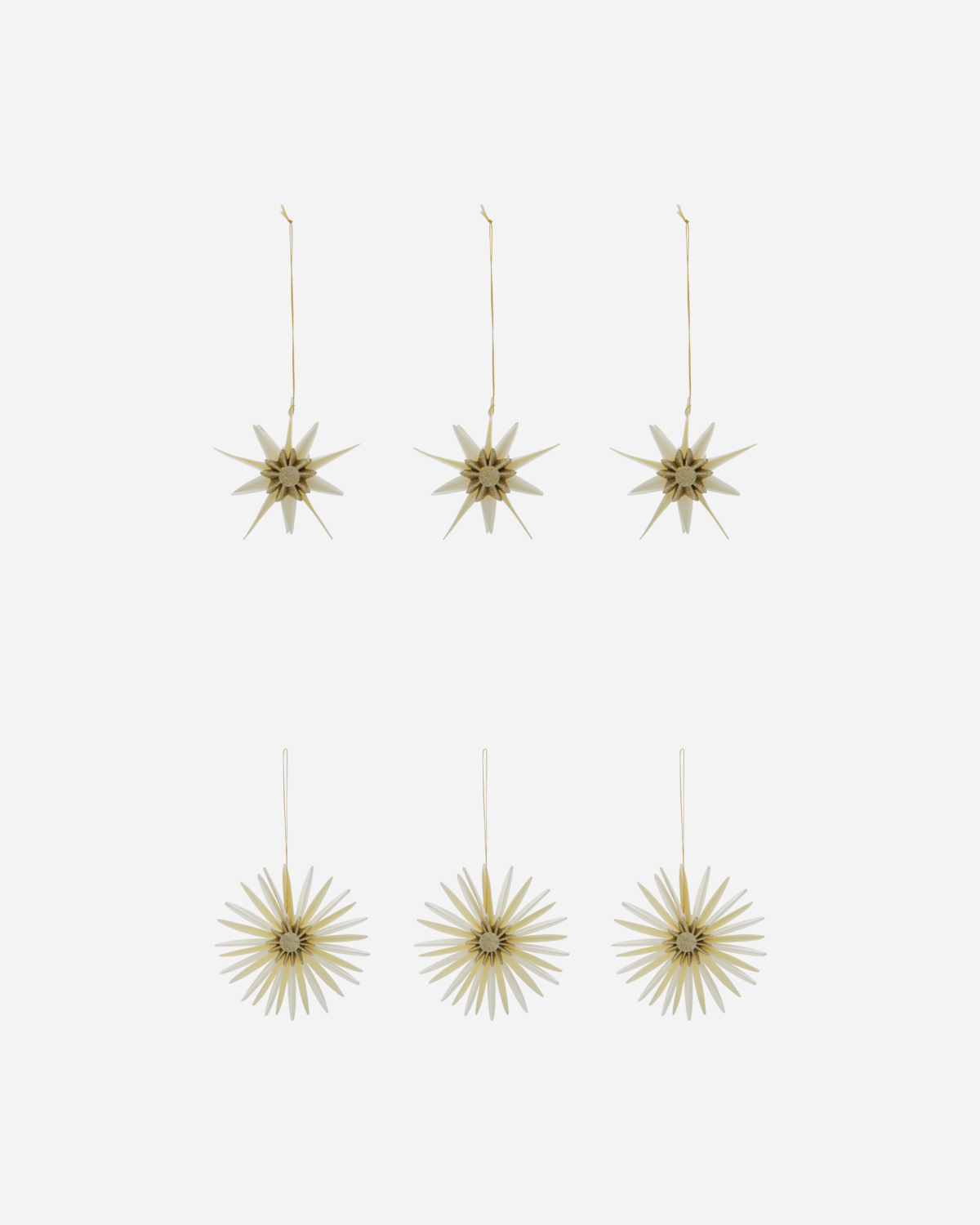 Elevate your festive décor with this set of handmade Christmas ornaments. Each set includes six pieces in two distinct designs.