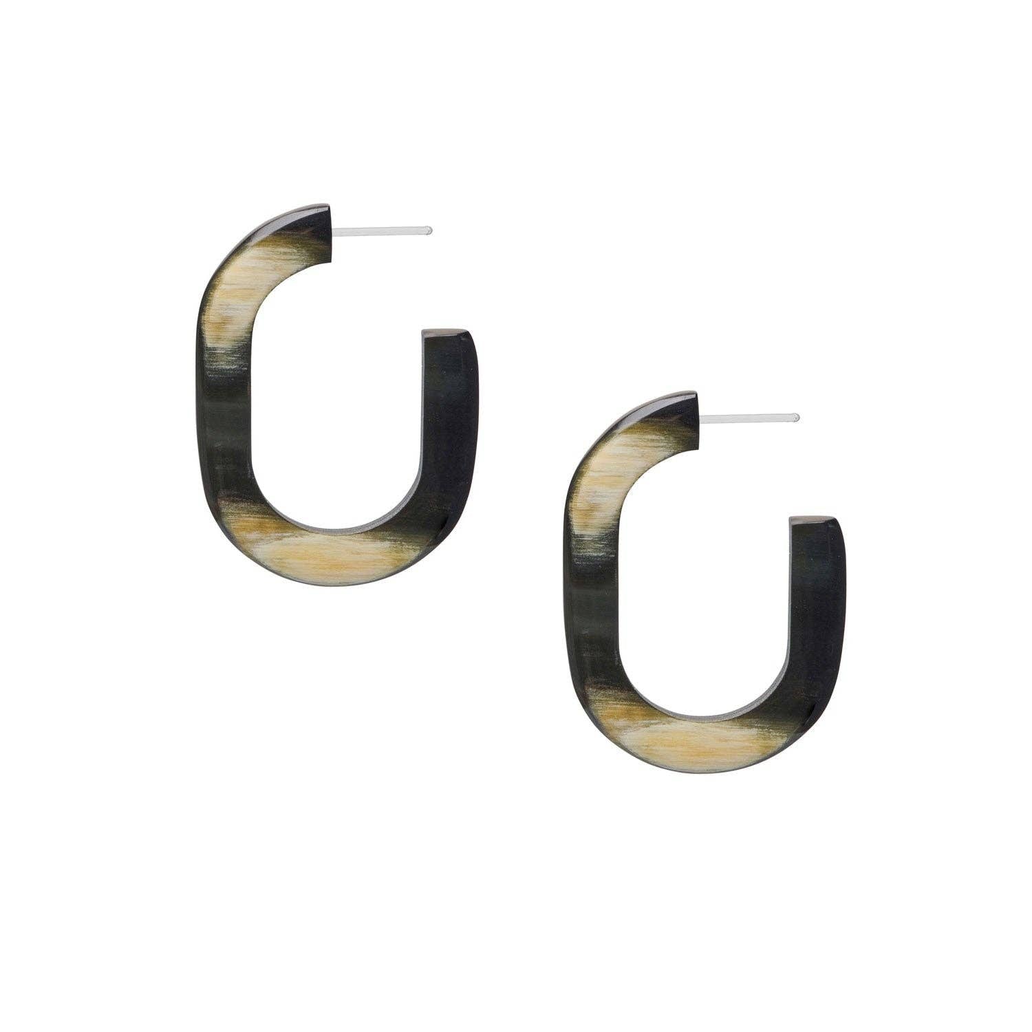 Horn hoop earrings with a bold oblong shape * Modern chunky hoops with a smooth polished finish * Lightweight oversized hoops designed for everyday comfort * Unique natural patterning—each pair is slightly different * Hand-carved artisan made earrings using ethically sourced materials * A signature piece of natural horn jewellery * A refined take on statement hoops A modern take on a classic hoop. These earrings are designed with a sculptural oblong shape that feels clean, bold and modern. They’re lightweight, polished, smooth, and instantly elevate even the simplest outfit. Each pair is handmade from natural buffalo horn. The horn is ethically sourced as a by-product of the farming industry, making it a more sustainable