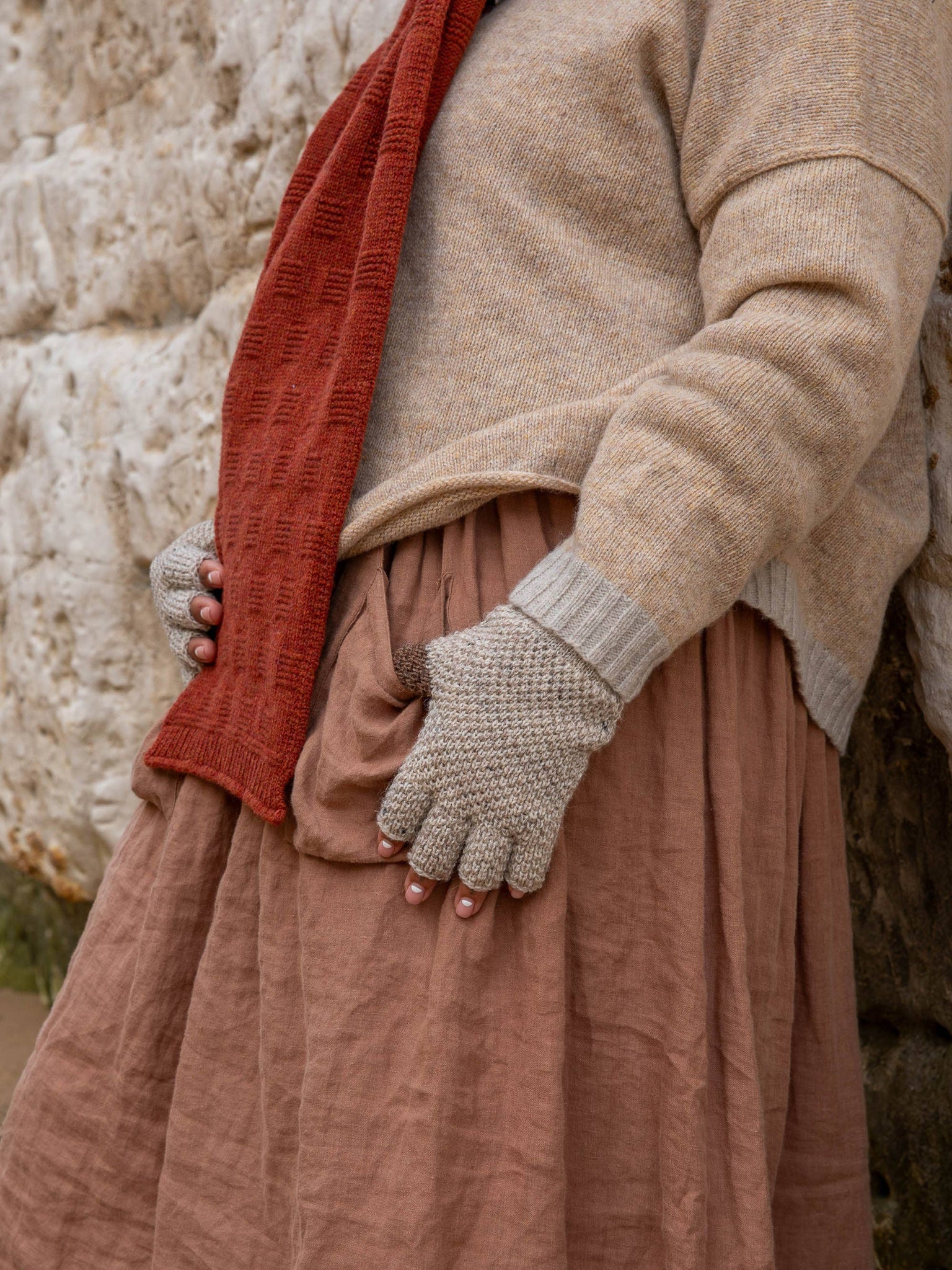 Practical and warm, our women's fingerless gloves feature an insulating textured stitch in flecked beige yarn with a contrasting brown colour thumb. With your fingers free to move, you can easily tackle outdoor tasks, type, and use your touch screen while keeping your hands warm.