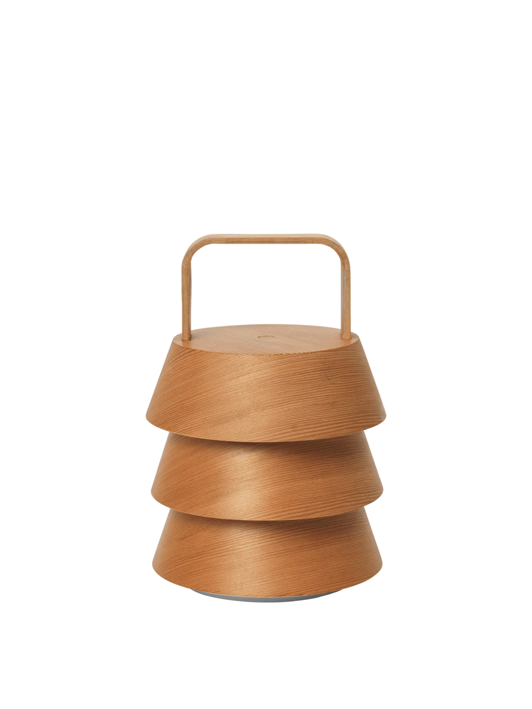 The Luver Portable Lamp combines elegance and portability. The stacked structure of three tapered Douglas fir shades showcases the lamp’s precise craftsmanship. A steam-bent wooden handle adds a crafted, human touch, while the lamp’s design scatters light to create a cosy atmosphere. With a touch dimmer and three light settings, it’s perfect for both indoor and dry-weather outdoor use. This versatile, well-crafted lamp adds warmth and sophistication to any space.