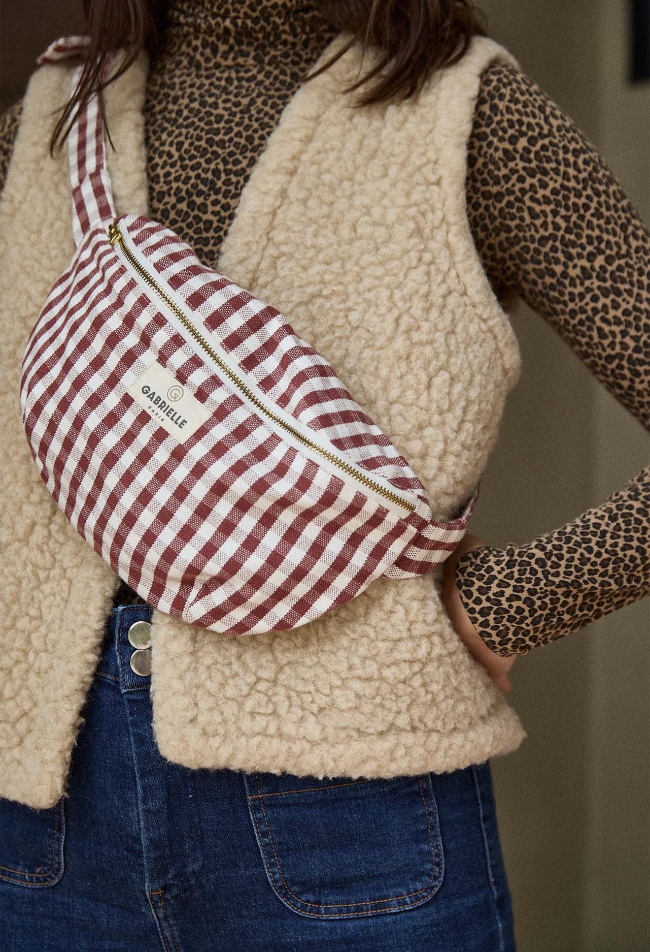 Vichy cotton check banana waist bag in Bordeaux. Chic and timeless.